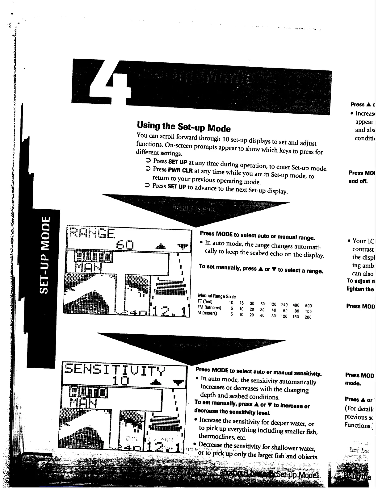Apelco 260 - Set-up Mode; Using the Set-up Mode; Range and Sensitivity Settings