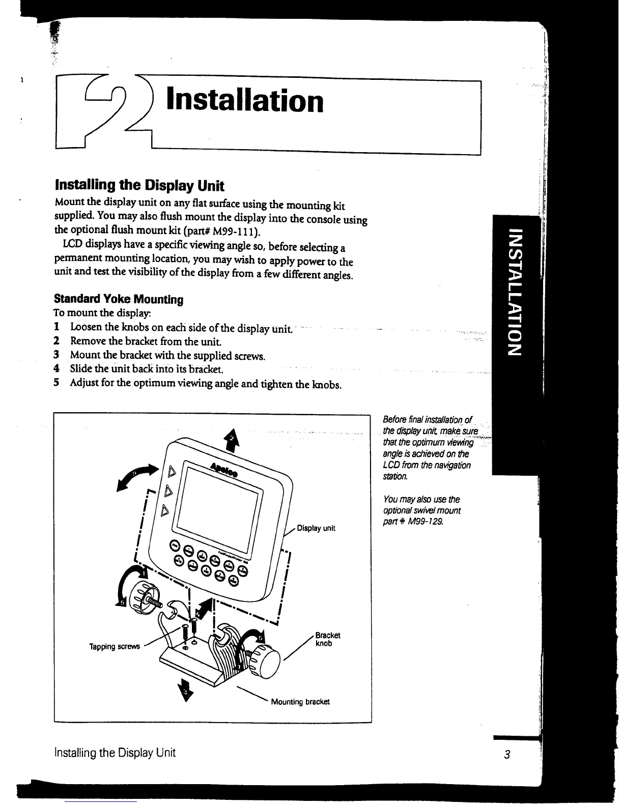 Apelco 560 - Installation; Installing the Display Unit; Standard Yoke Mounting