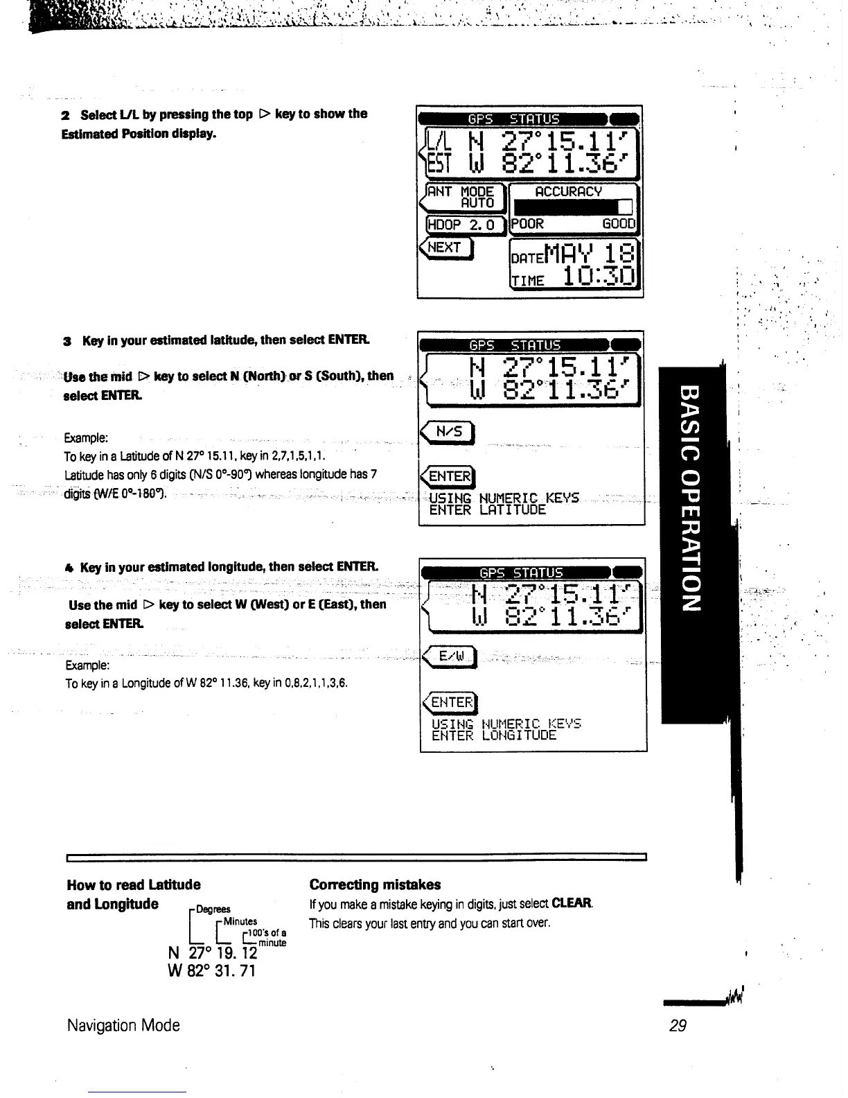 Apelco 560 - Correcting Mistakes; How to Read Latitude and Longitude