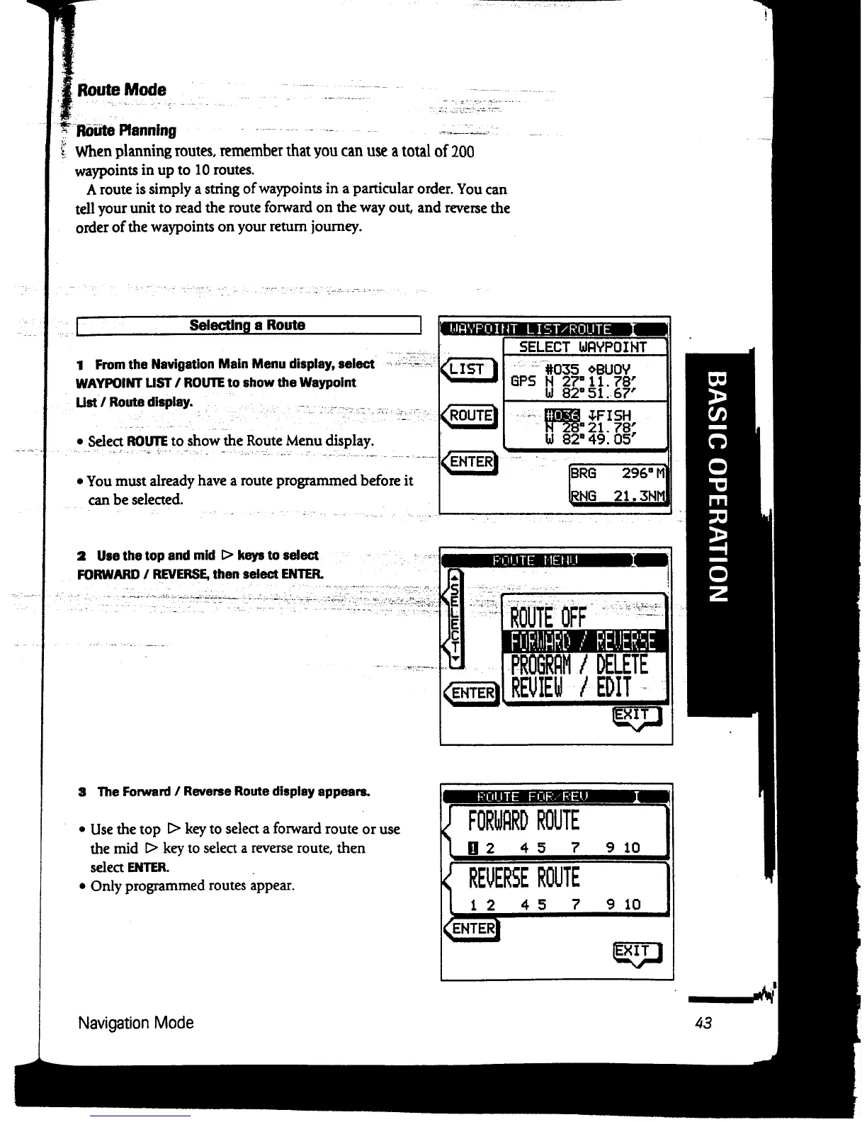 Apelco 560 - Route Mode; Selecting a Route; FishFinder Set-up Mode