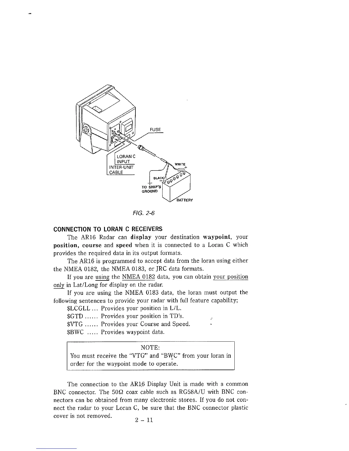 Apelco AR-16 - LORAN C RECEIVER INTERFACE CONNECTION