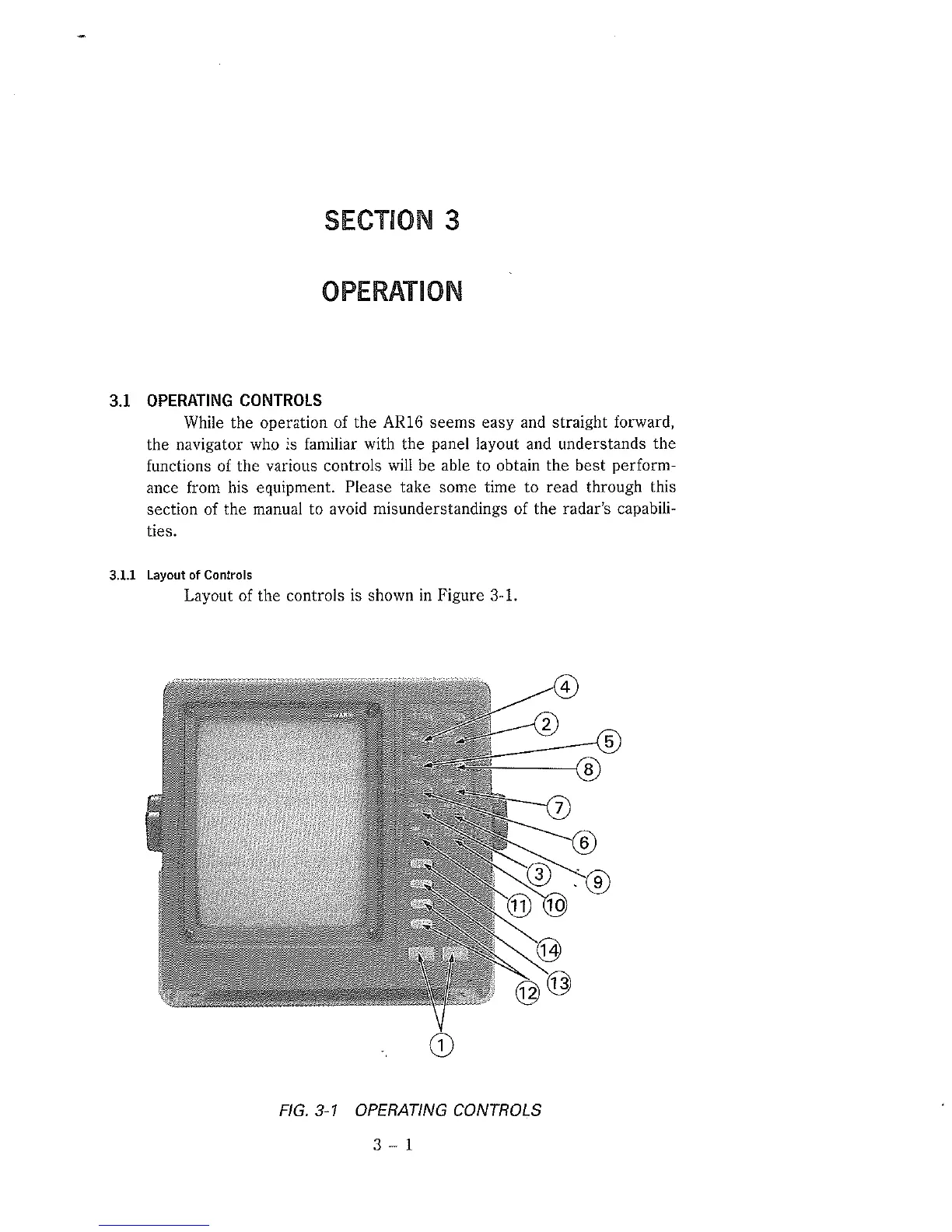 Apelco AR-16 - RADAR OPERATION AND CONTROLS; OPERATING CONTROLS LAYOUT AND FUNCTION OVERVIEW