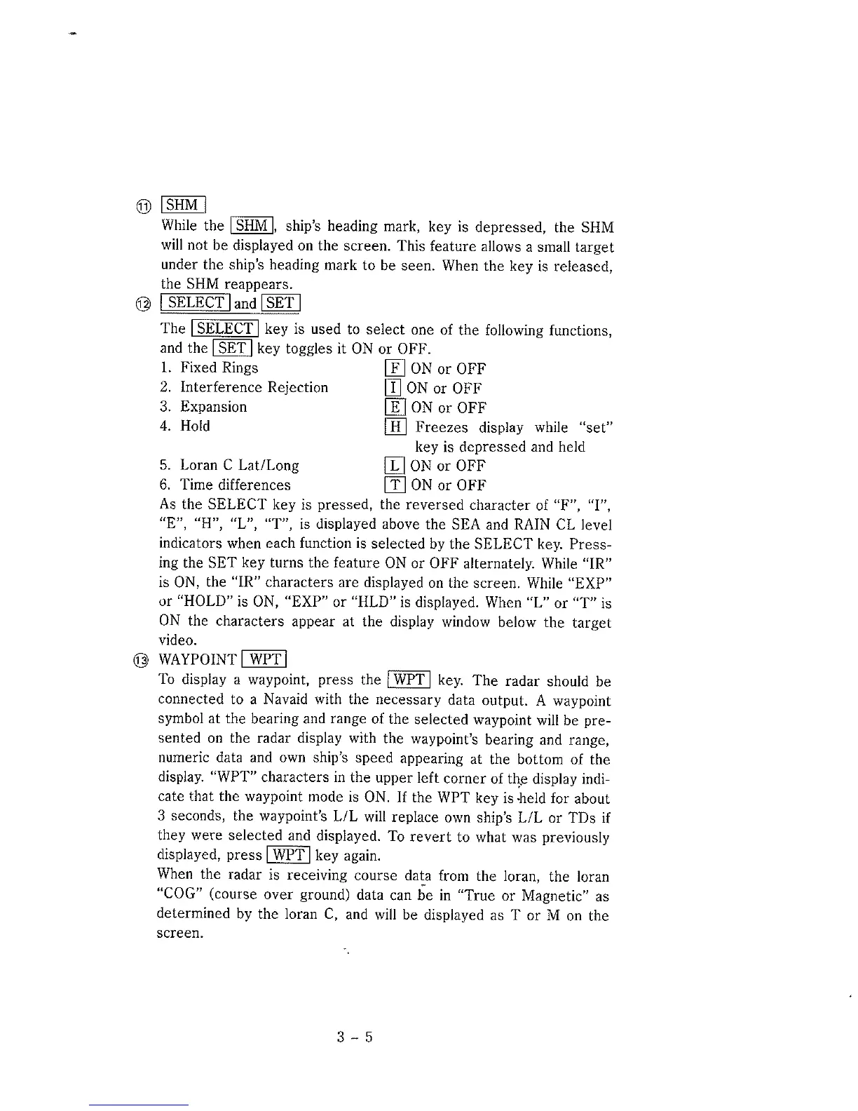 Apelco AR-16 - ADDITIONAL OPERATING CONTROLS: SHM, SELECT;SET, WAYPOINT