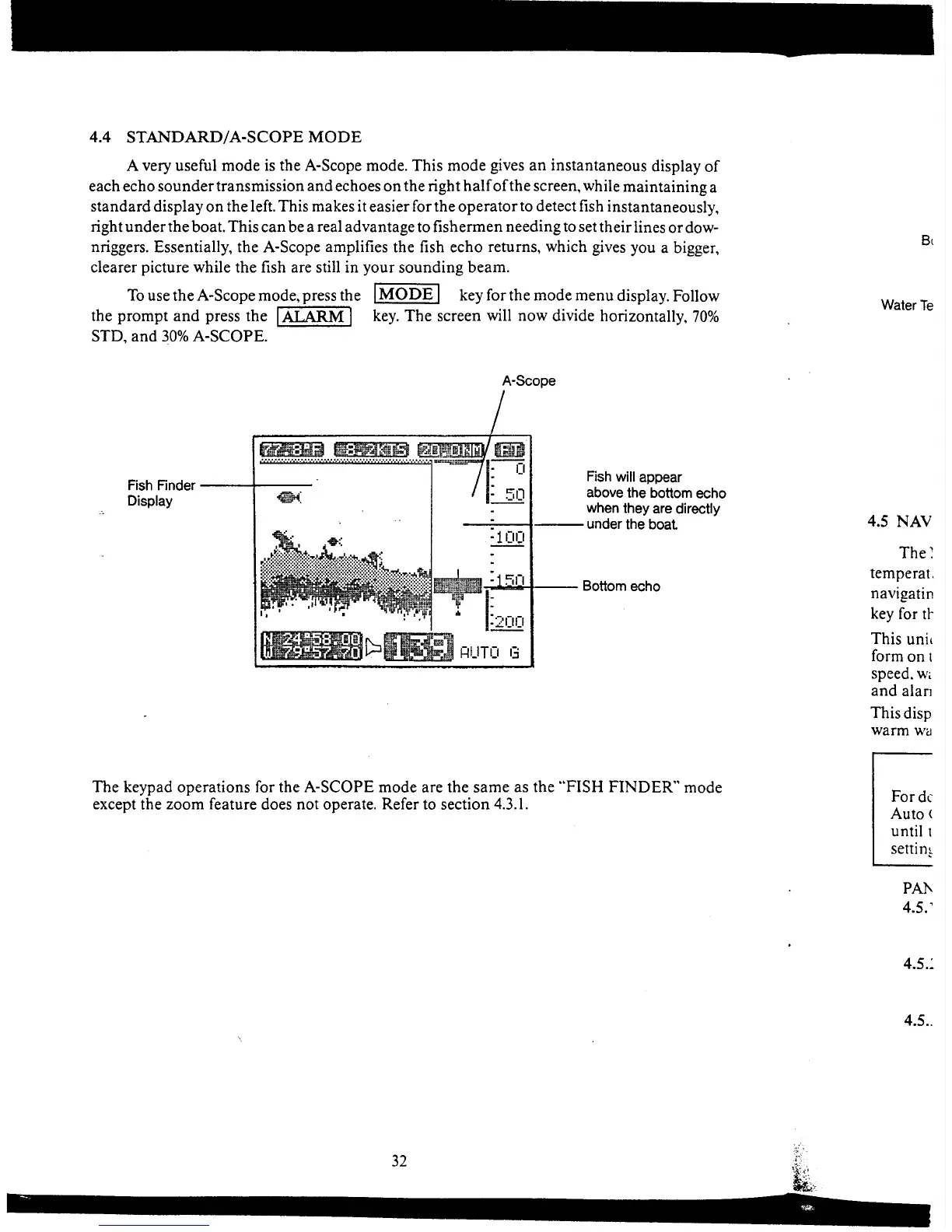 Apelco XCD-550 - 4.3.6 Fish Locator Mode; 4.3.7 Using the Alarms
