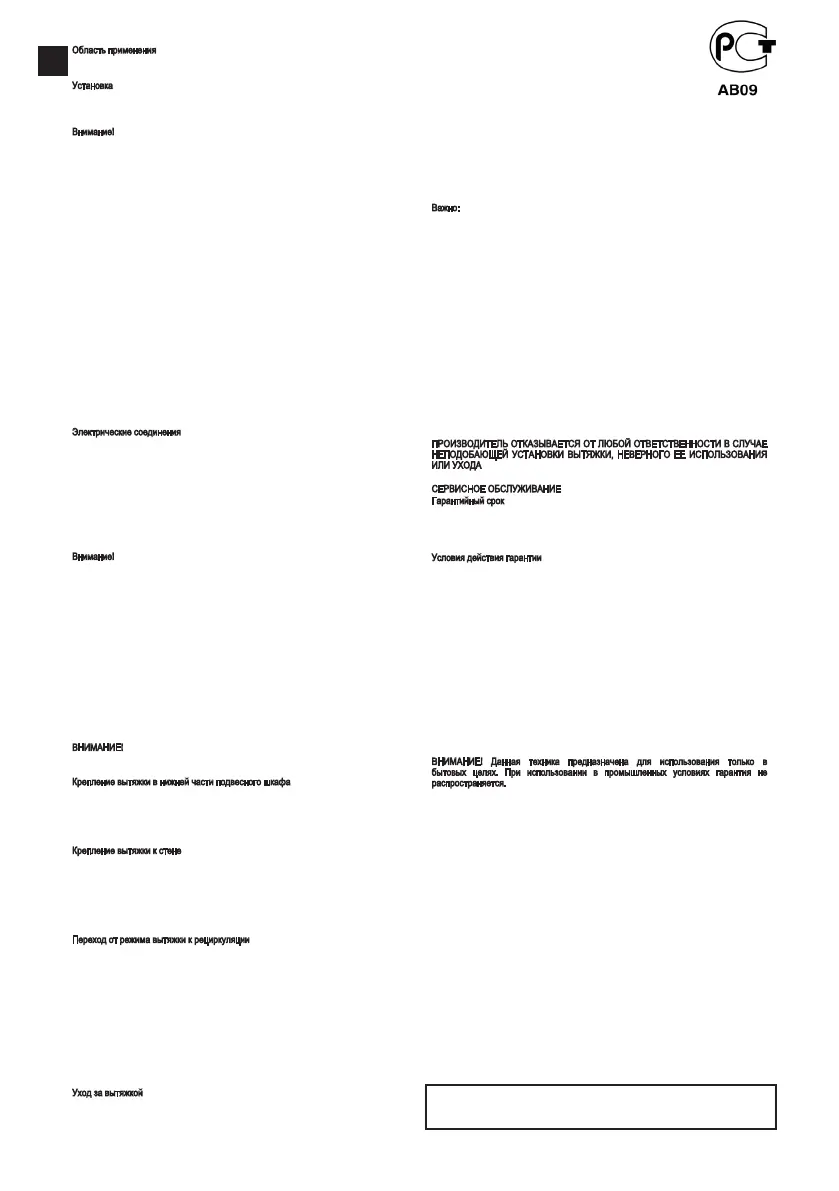 Вытяжка должна быть установлена в месте, где штепсельная вилка недоступна.