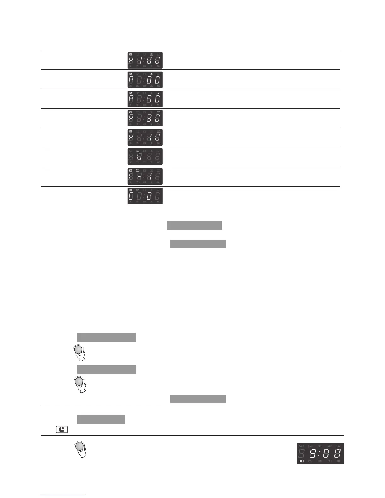 2) Input the cooking program. Three stage power levels can be set at most. Defrost