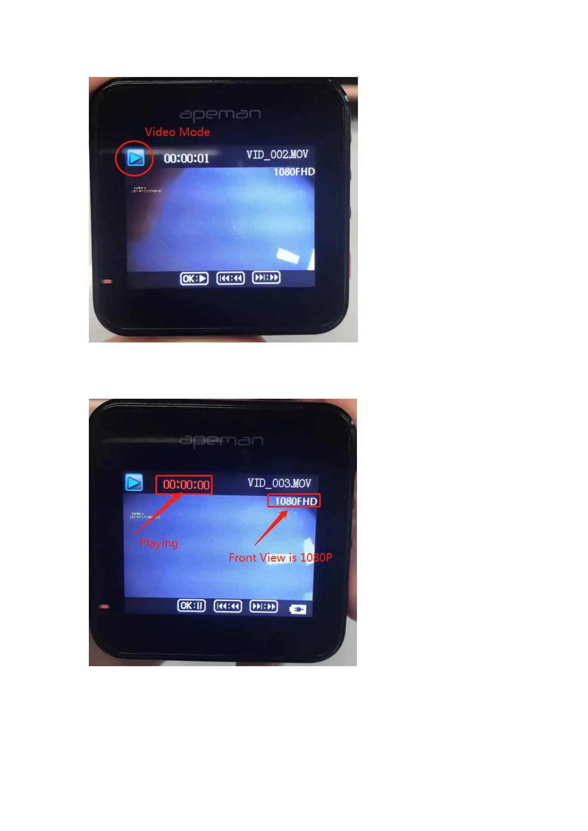 b. To playback REAR VIEW videos: Long-press the UP button to
