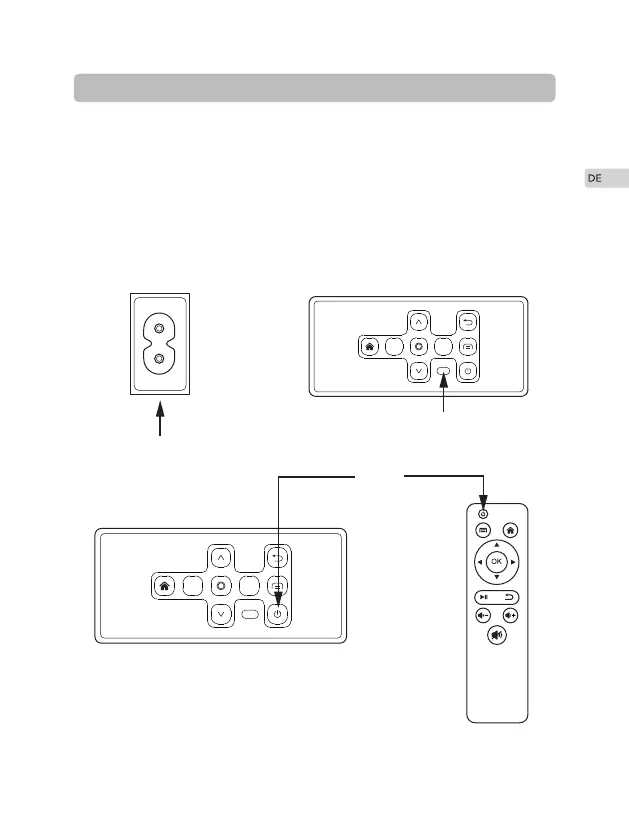 Drücken Sie den Netzschalter am Beamer oder auf der Fernbedienung, um den