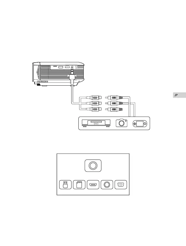 下図のに、3in1AVケーブル(付属)にてプローのAVスに