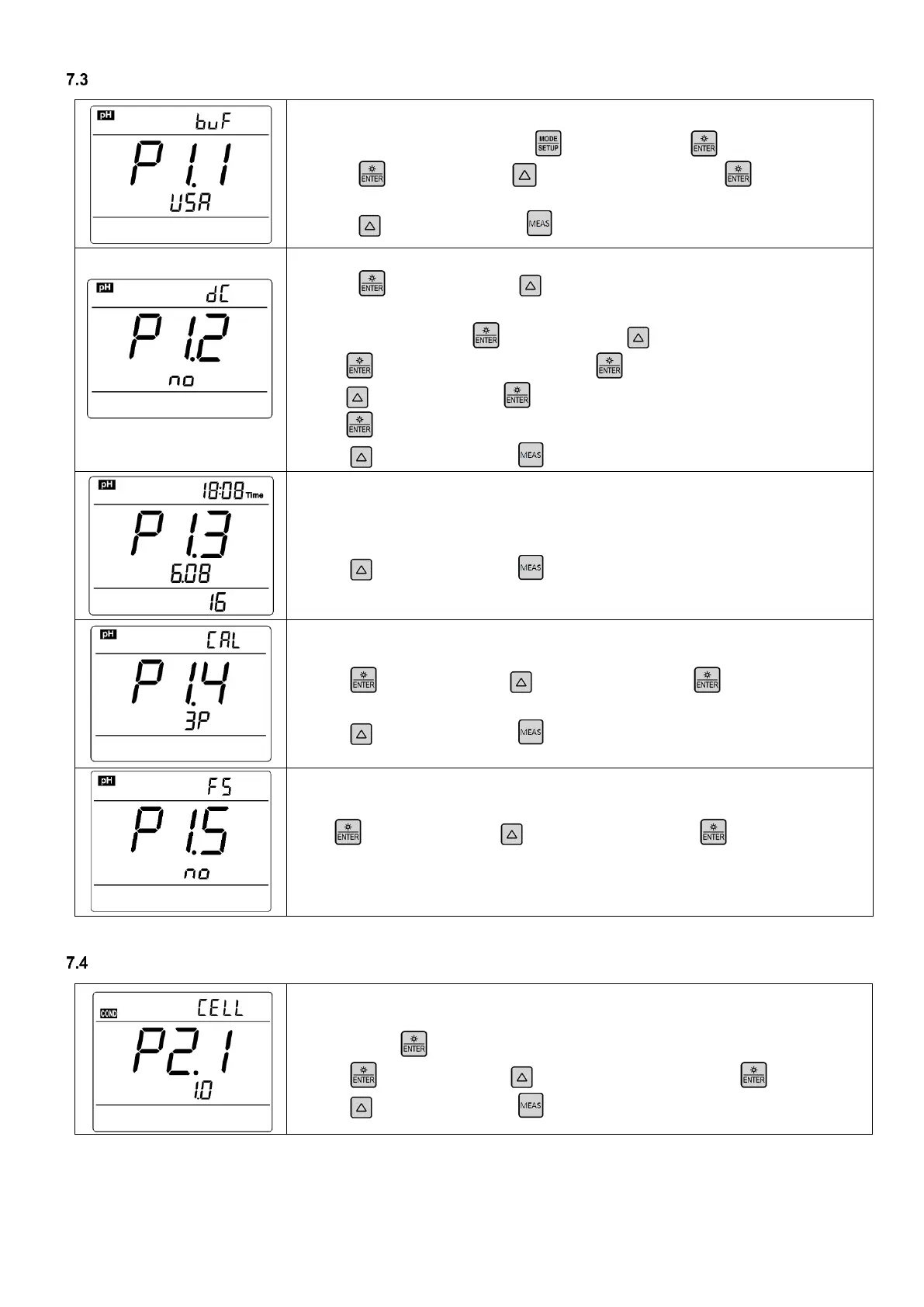 P1.4 — Select pH calibration mode (3P—5P)