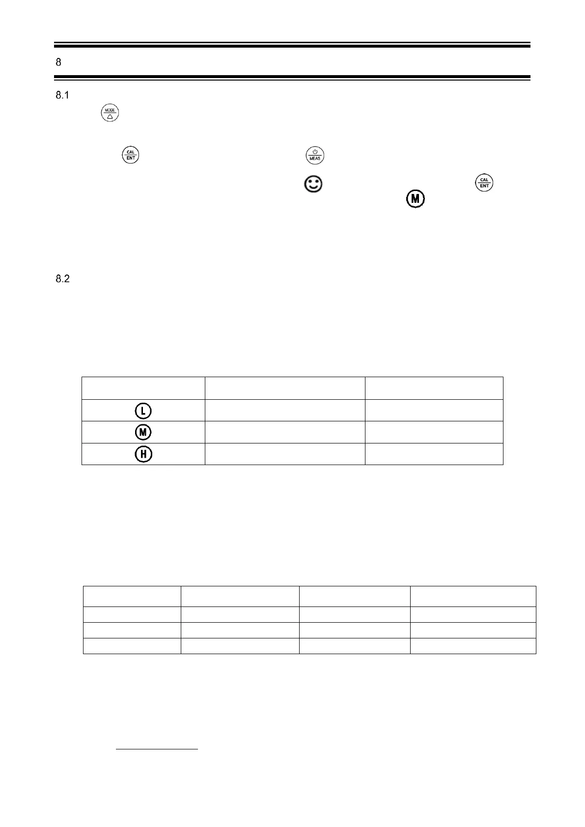 calibration solution. User can conduct 1 to 3 points calibration. Refer to the table below. Usually