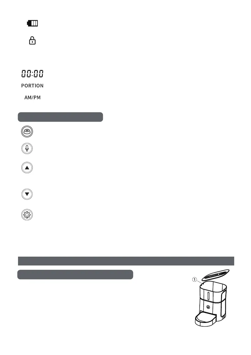 Touche bas/déverrouillage : réglez l'horloge et l'heure d'alimentation; Cette touche
