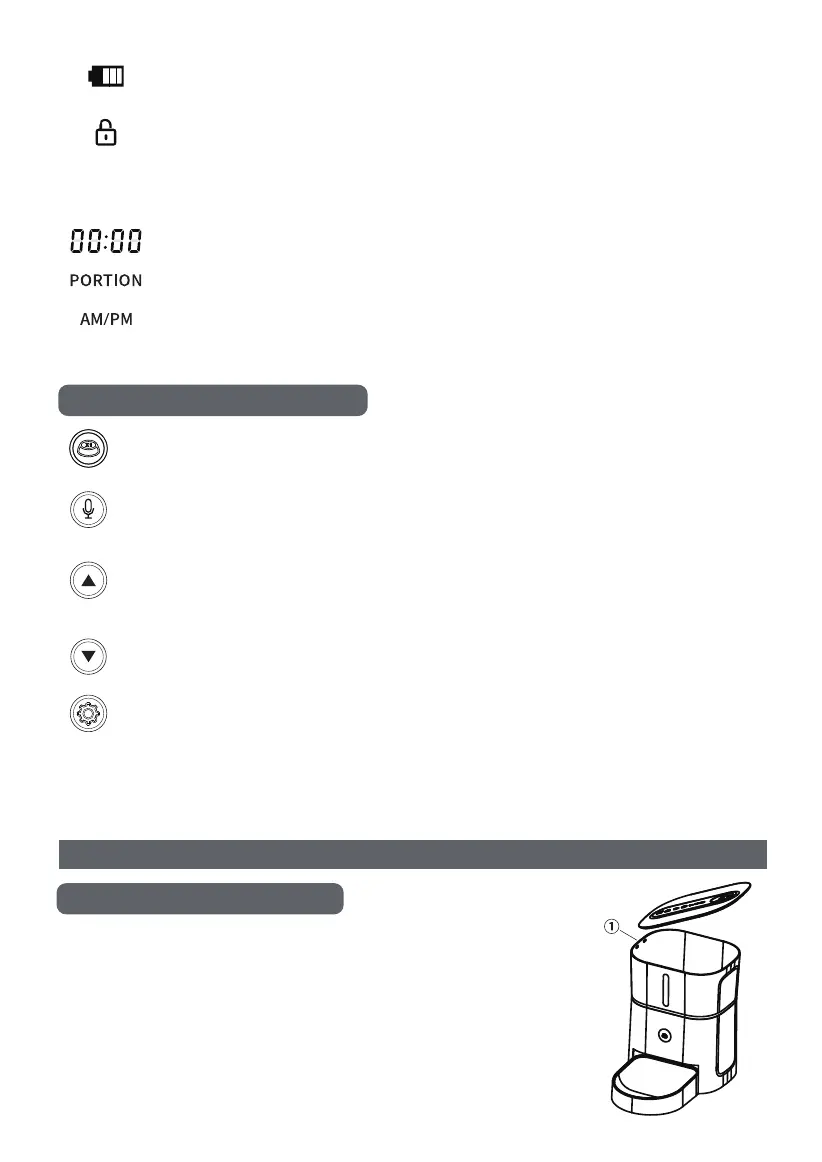 Botón Abajo/desbloquear: 1. Configure el reloj y la hora de alimentación; 2. Esta tecla