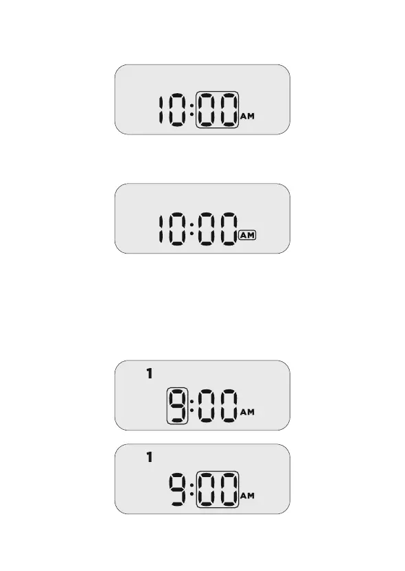 3. The AM icon flashes, press the Up/Down button to choose AM or PM, press