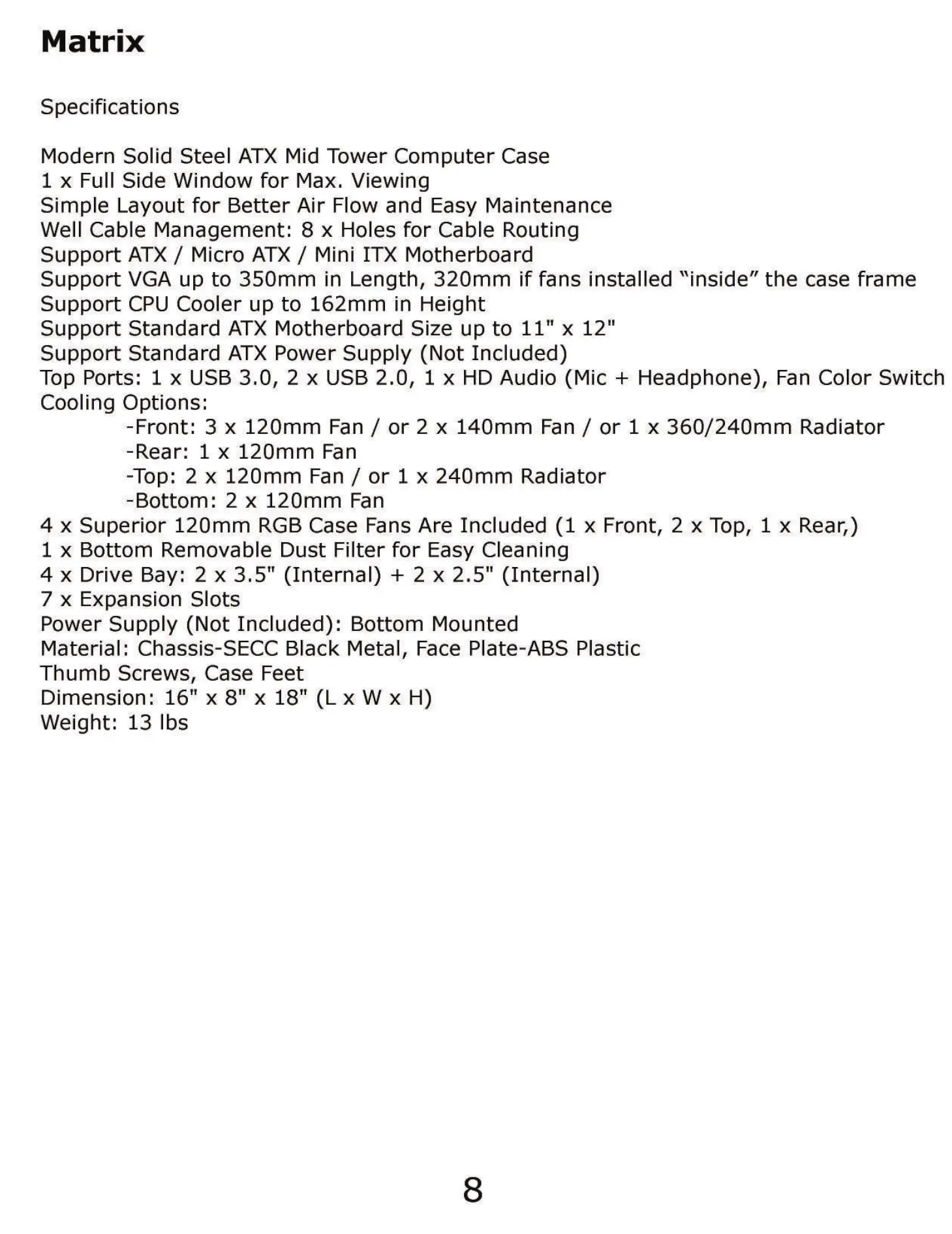 Support Standard ATX Motherboard Size up to 11 tt x 12"