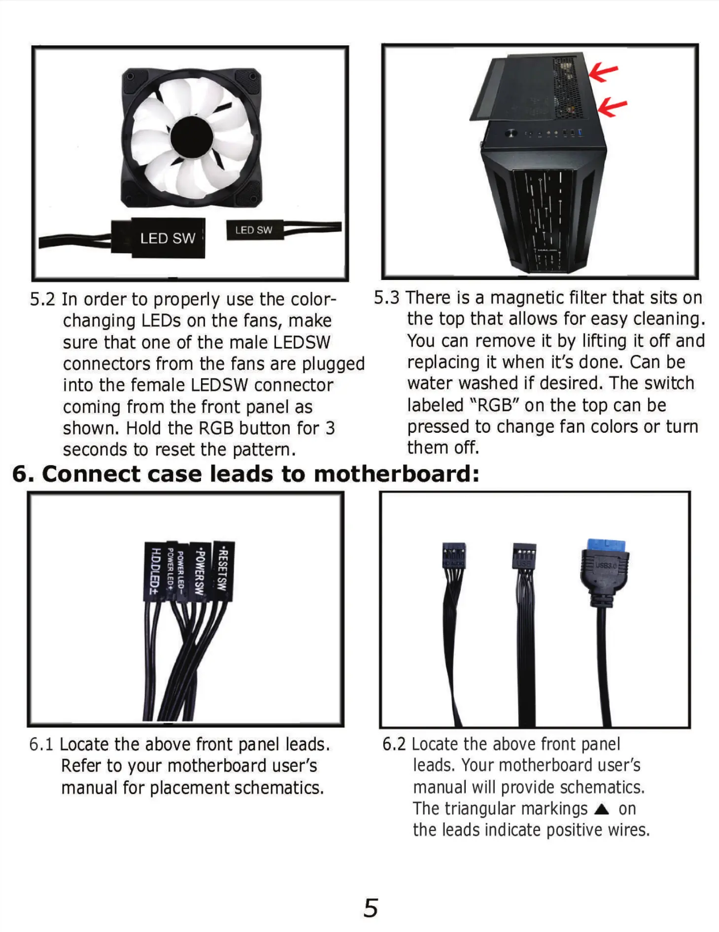 6.1 Locate the above front panel leads.
