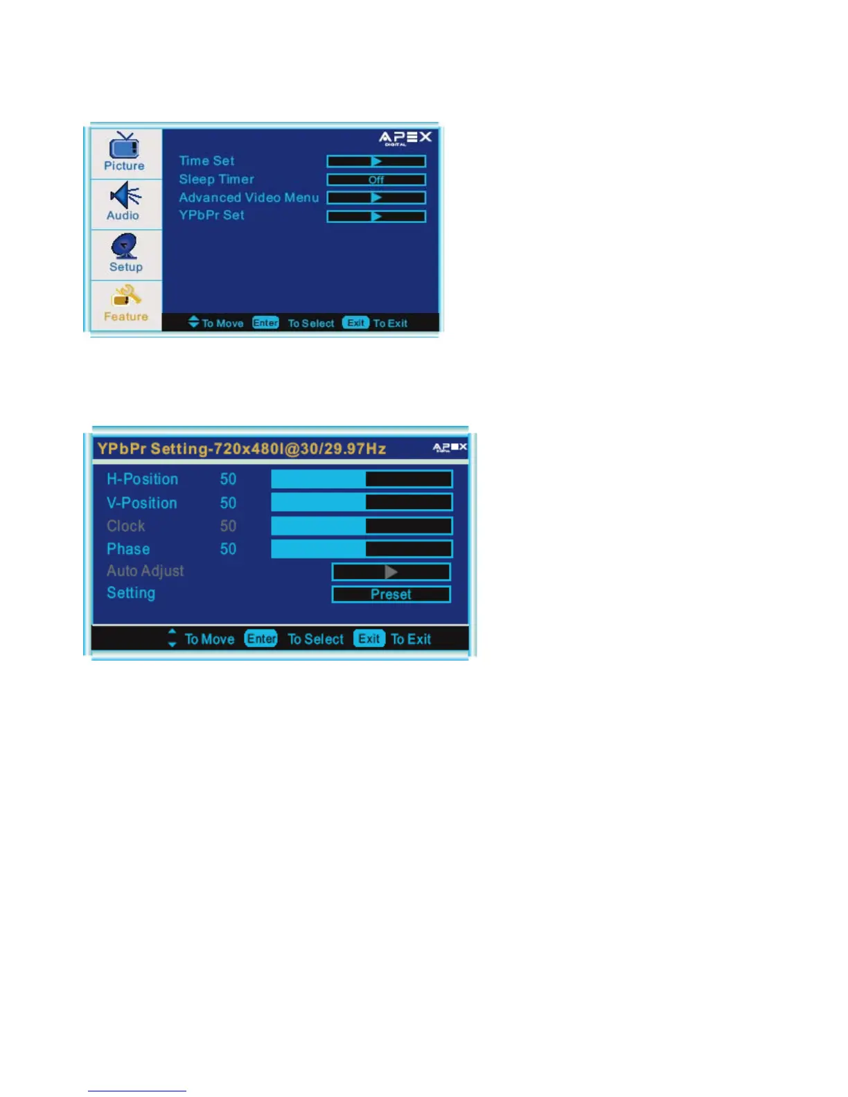Menú de config. de YPbPr.