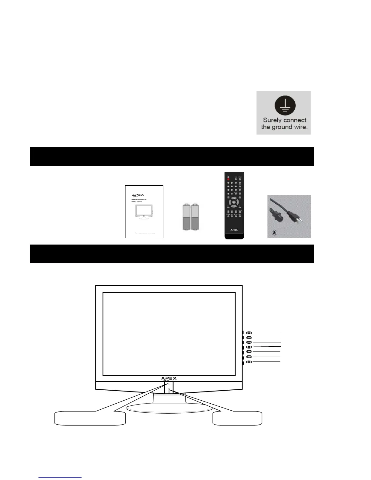 masse du téléviseur à la borne de masse fournie dans la prise de courant au moyen