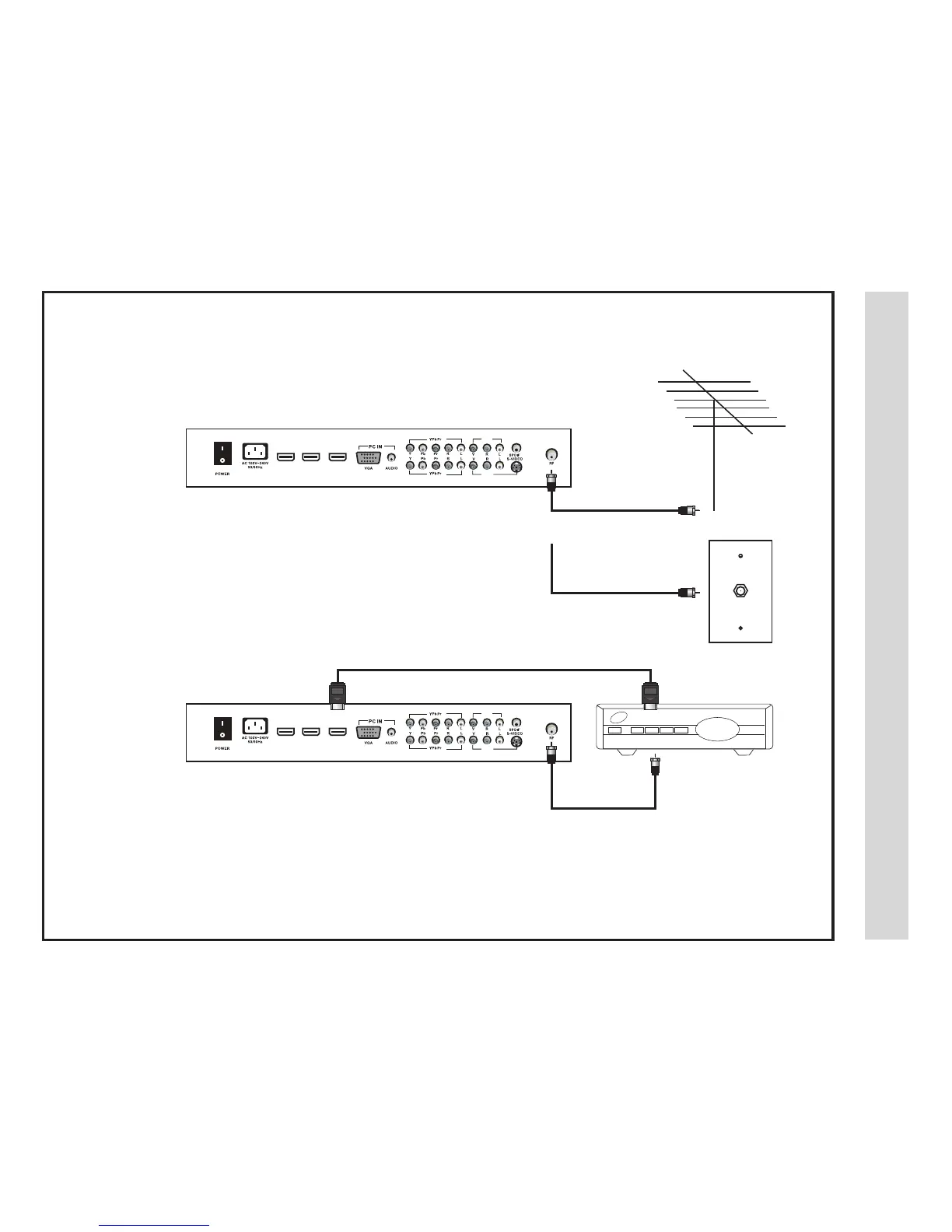 Connect the RF coaxial (75ohm) cable from your existing roof top antenna •