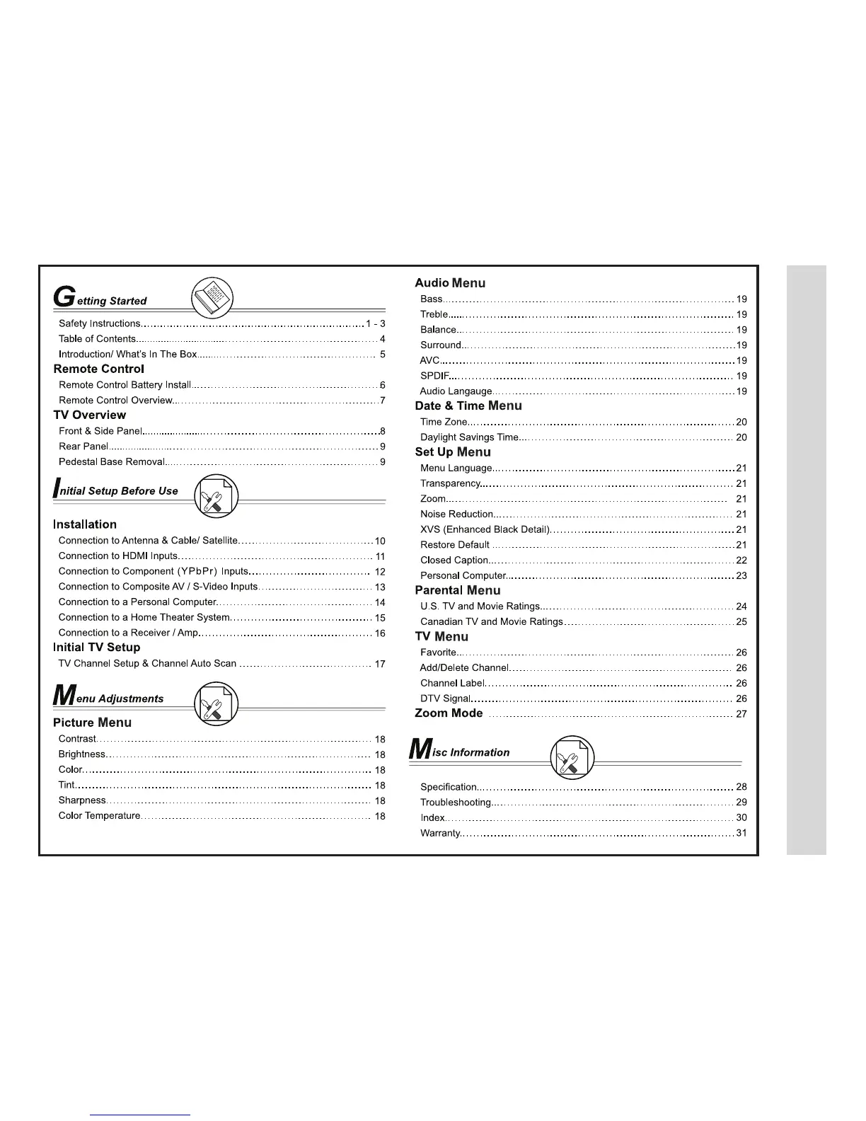 Apex Digital LD3249 - Table of Contents