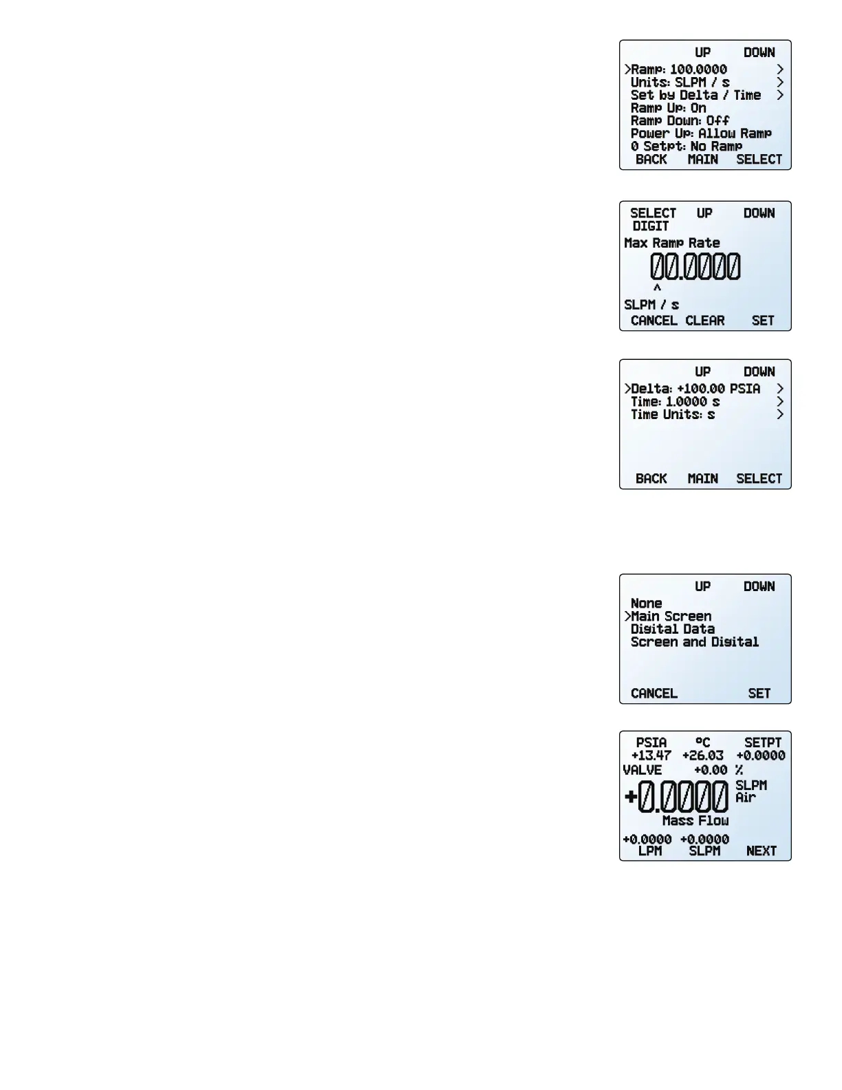 Setpoint ramping regulates how quickly the controller will reach the pressure setpoint. It