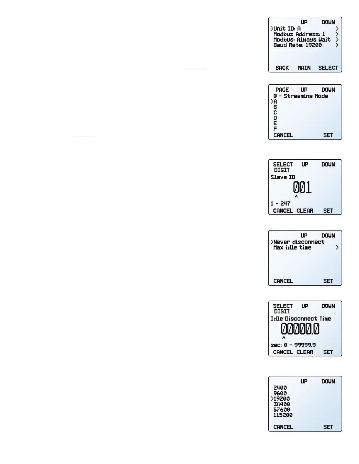 SETUP → RS-232 Serial or RS-485 Serial → Modbus Address