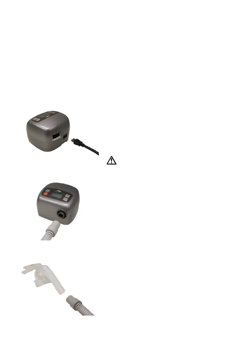 1) Connect the power cord to CPAP device and plug into main