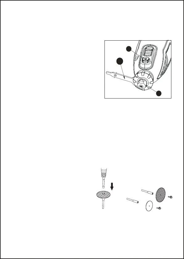 'con la llave provista (A) hasta que la pinza sujete el mango del accesorio. Evite