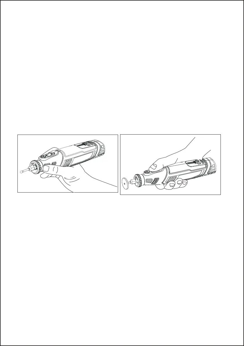l’accessoire dans la pince. Vous ne devez pas vous appuyer ou pousser l’outil pendant son utilisation.