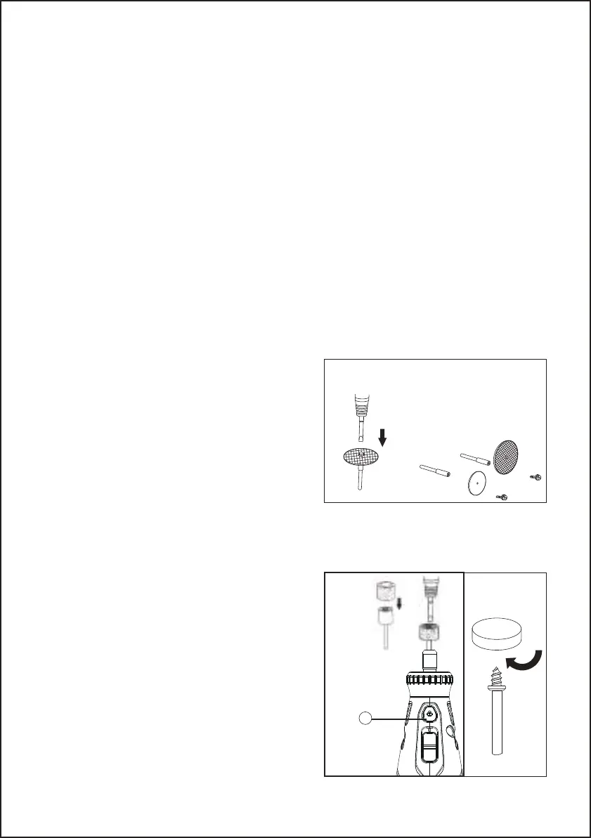 plateau porte-disque, d’une brosse ou de tout autre accessoire en rotation. Le pincement ou l’accro-