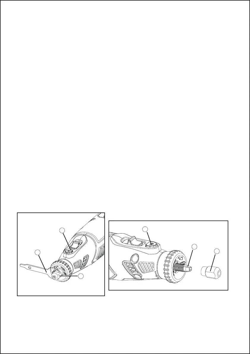cepillo o cualquier otro accesorio. El pellizco o enganche provoca un bloqueo rápido del accesorio