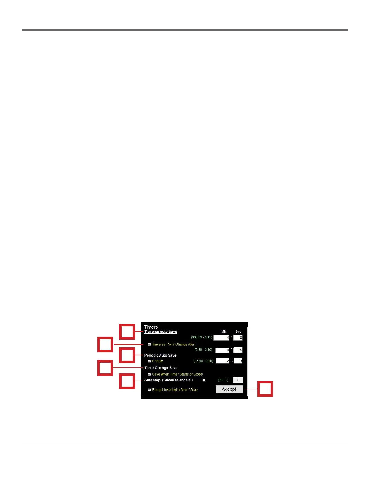 - All changes in the Timer Settings box are not saved until this Accept button is clicked. If the