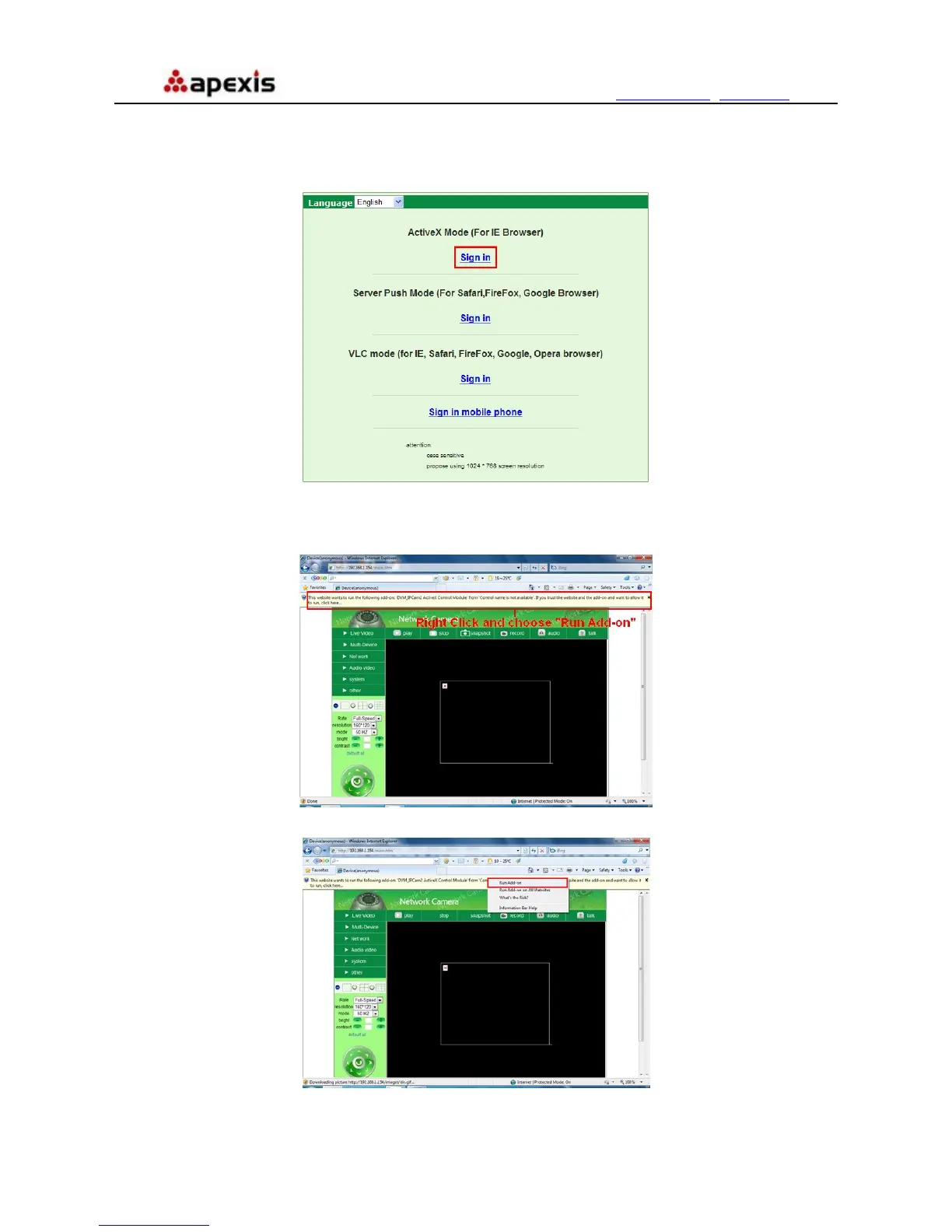 choose Run Add-on, refresh and login the camera again, then will see live video, details as below