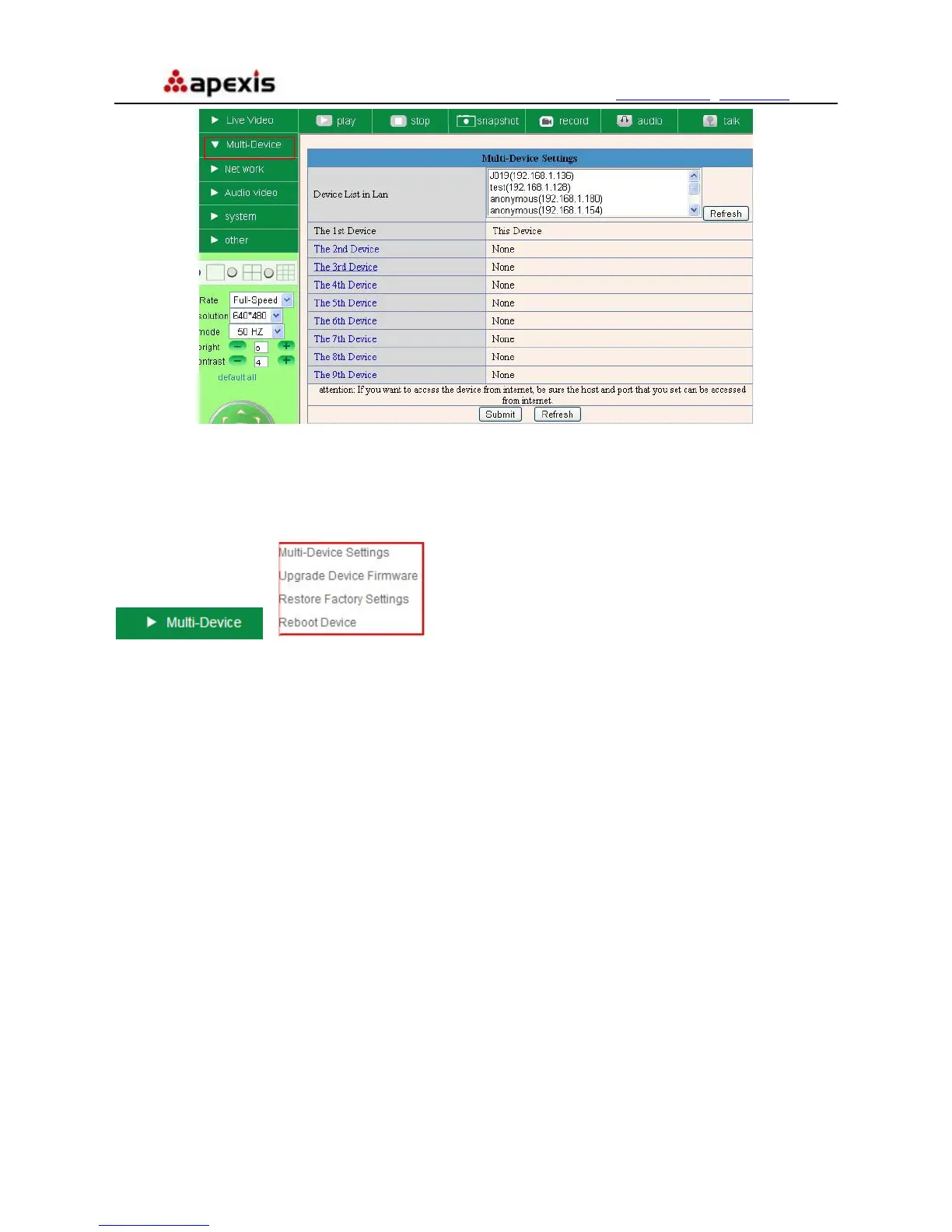 In the Multi-Device Settings page, you can see all devices searched in LAN. The 1st device is the default one.