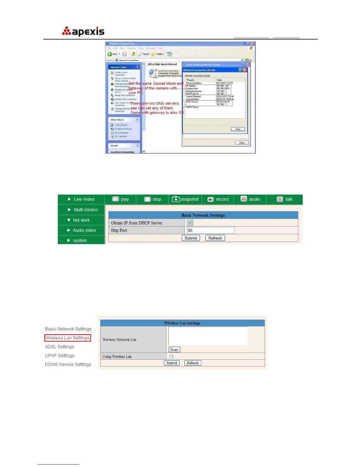 4. Login the camera, click “Network”>”Wireless Lan Settings”>”Scan”, please scan 2 times, then you will find