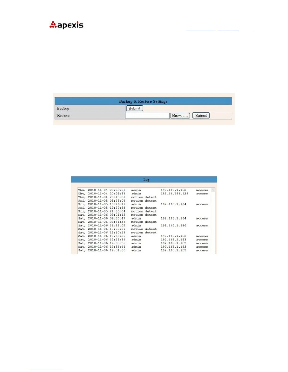 (1)Backup: Backup IP Camera all the Parameter, if you want to save all the current settings that you have