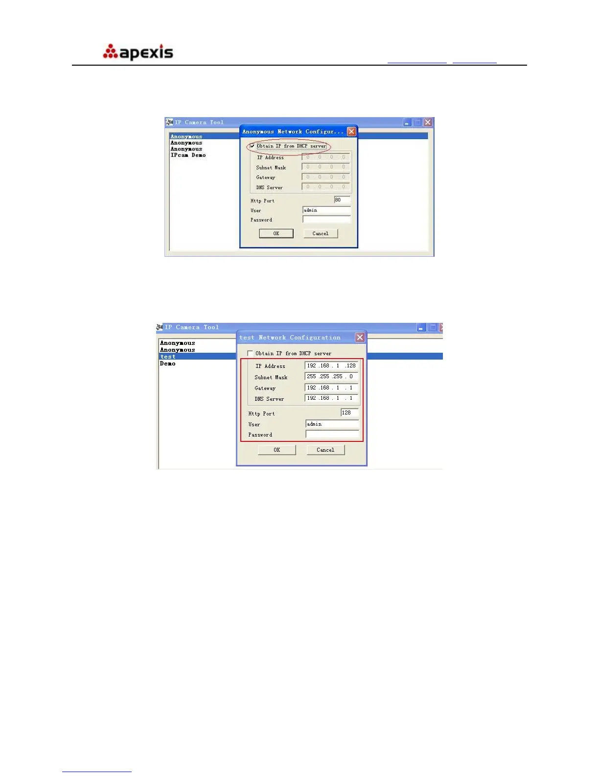 Http Port: LAN port assigned for the equipment, default is 80. You could set another port number like 81, 801,