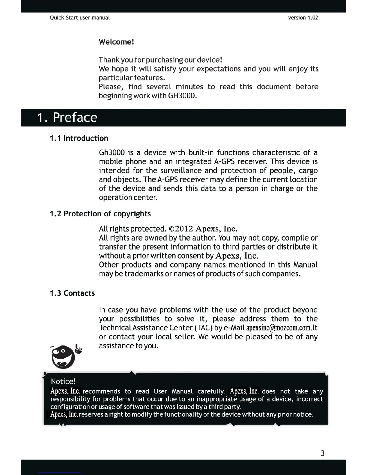 Apexs GH3000 - 1. Preface; Introduction and Support