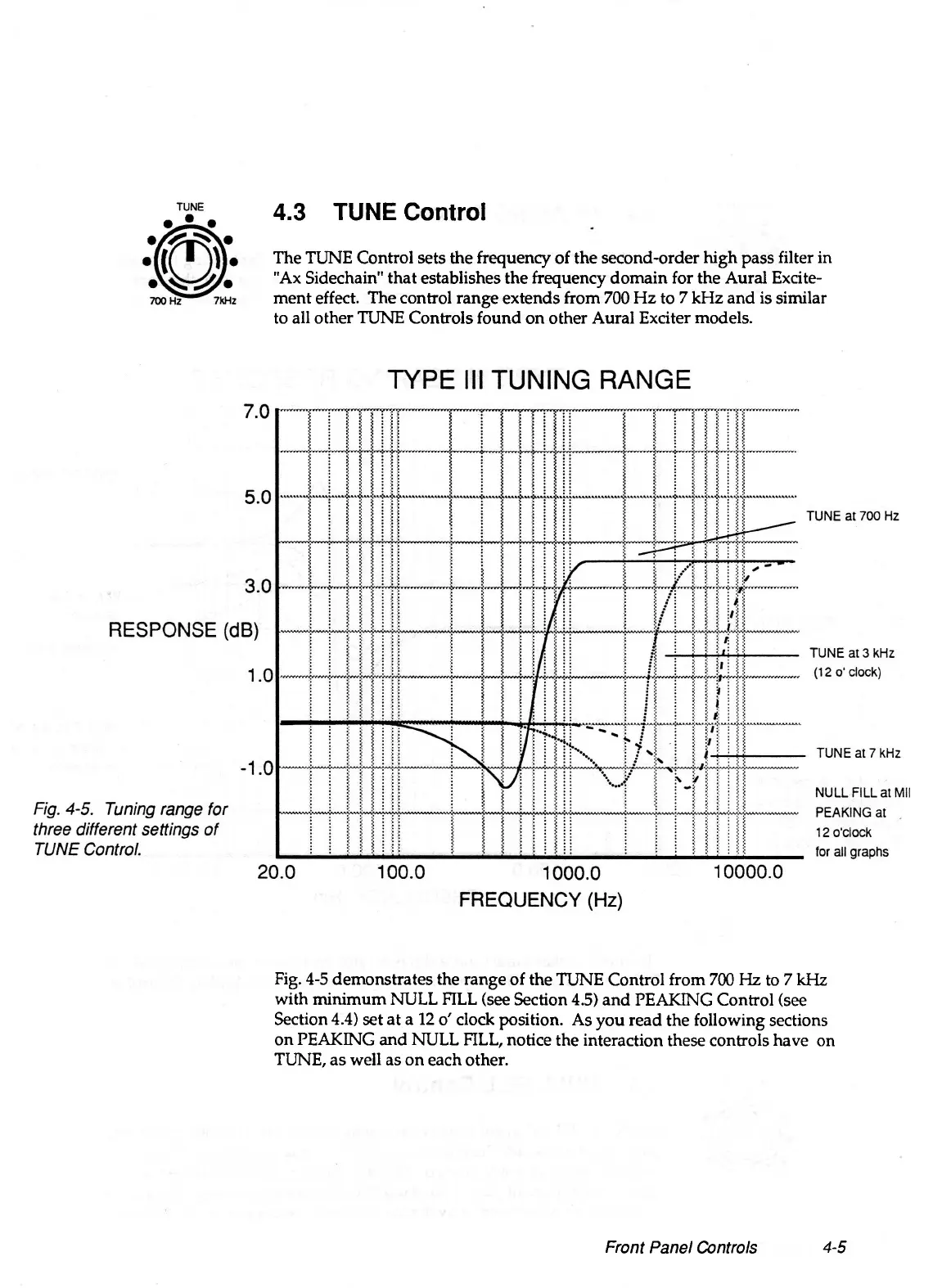 Fig. 4-5 demonstrates the range of the TUNE Control from 700 Hz to 7 kHz
