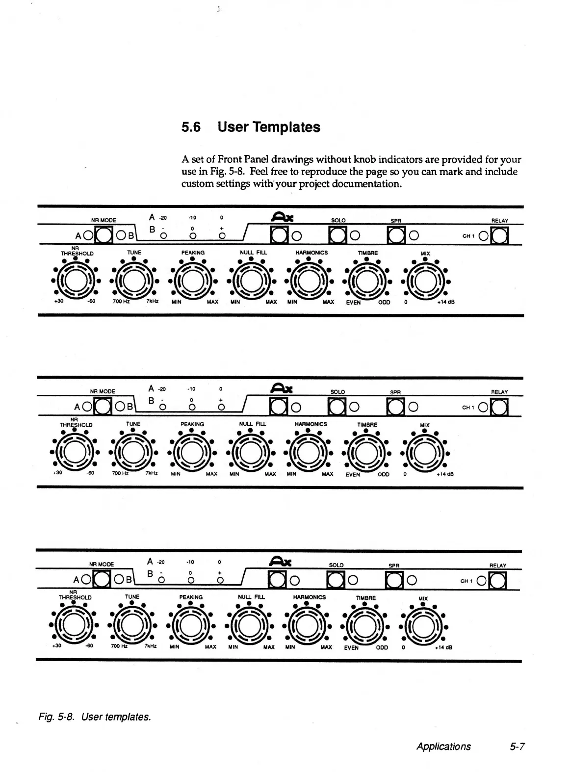 A set of Front Panel drawings without knob indicators are provided for your