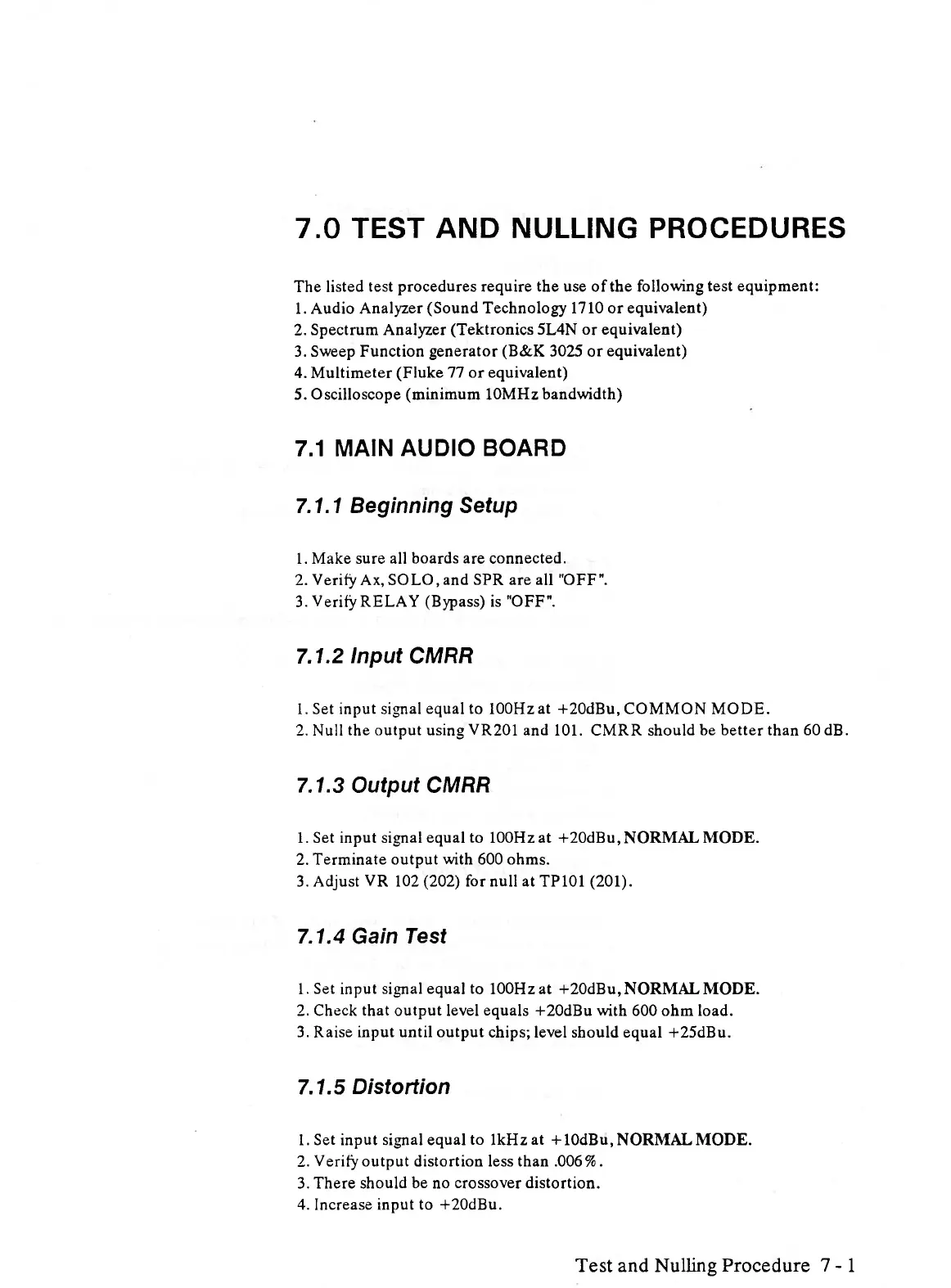 Test and Nulling Procedure 7 -1