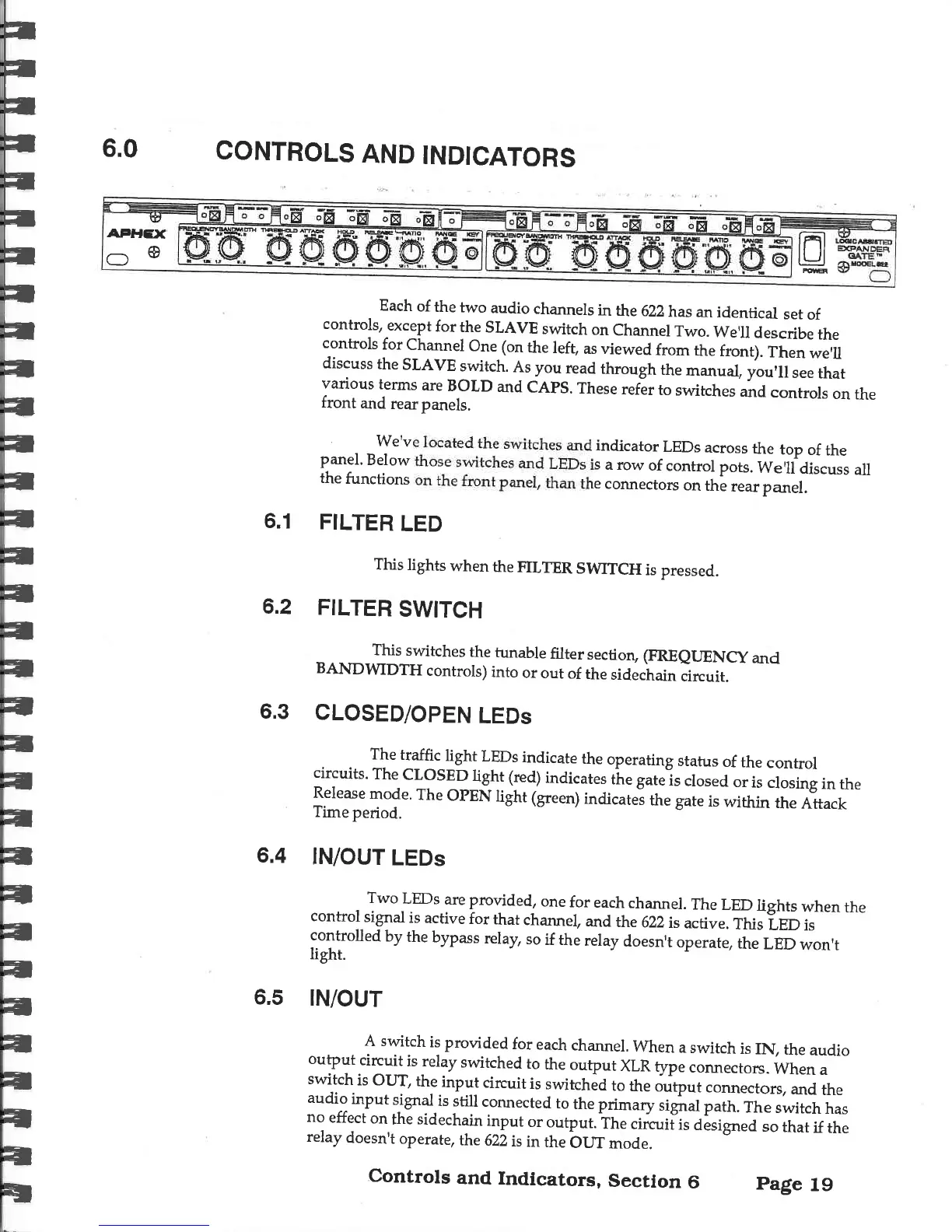 Aphex 622 - 6.0 CONTROLS AND INDICATORS; Channel Status and Switching