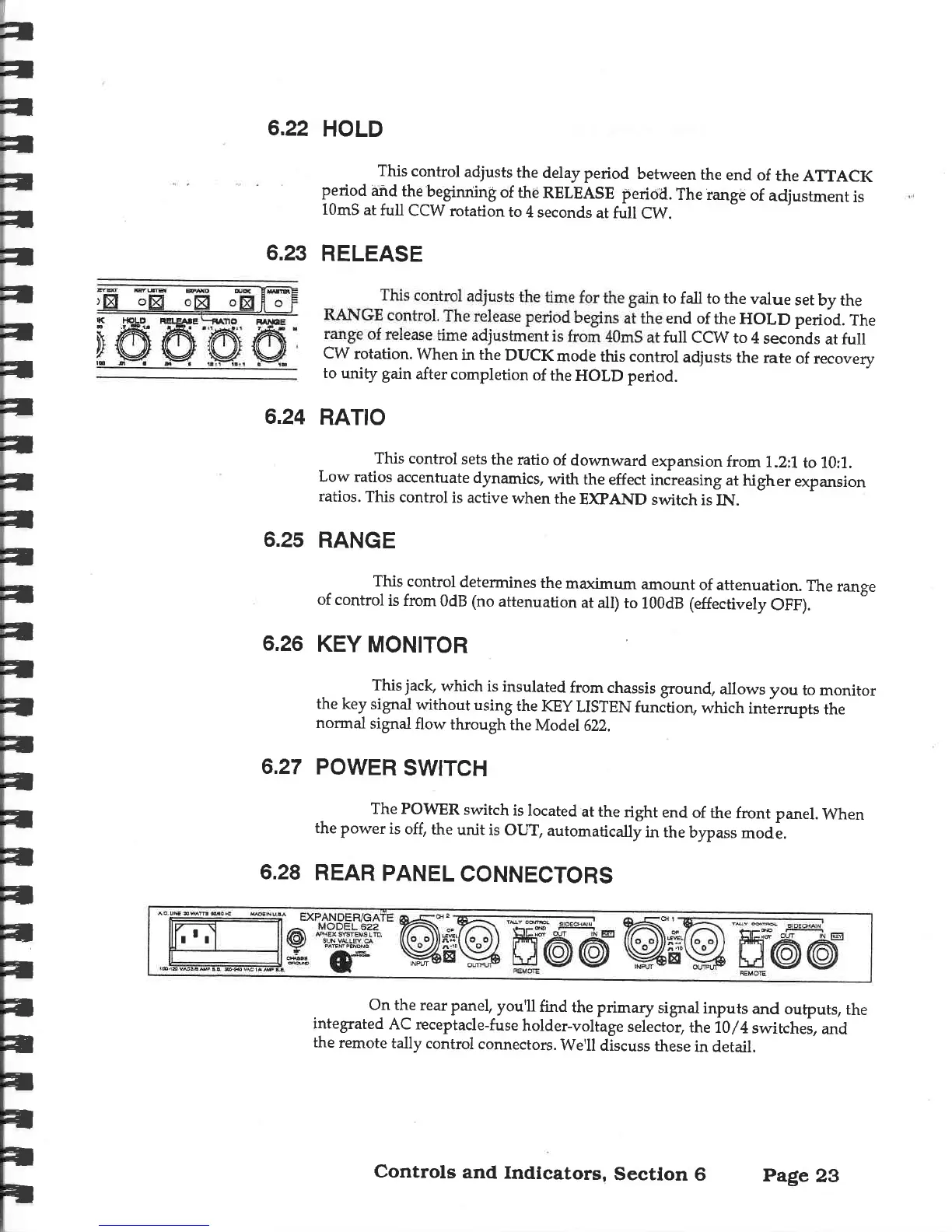 Aphex 622 - Core Parameter Controls: Timing and Range; Monitoring and Rear Panel Connectors