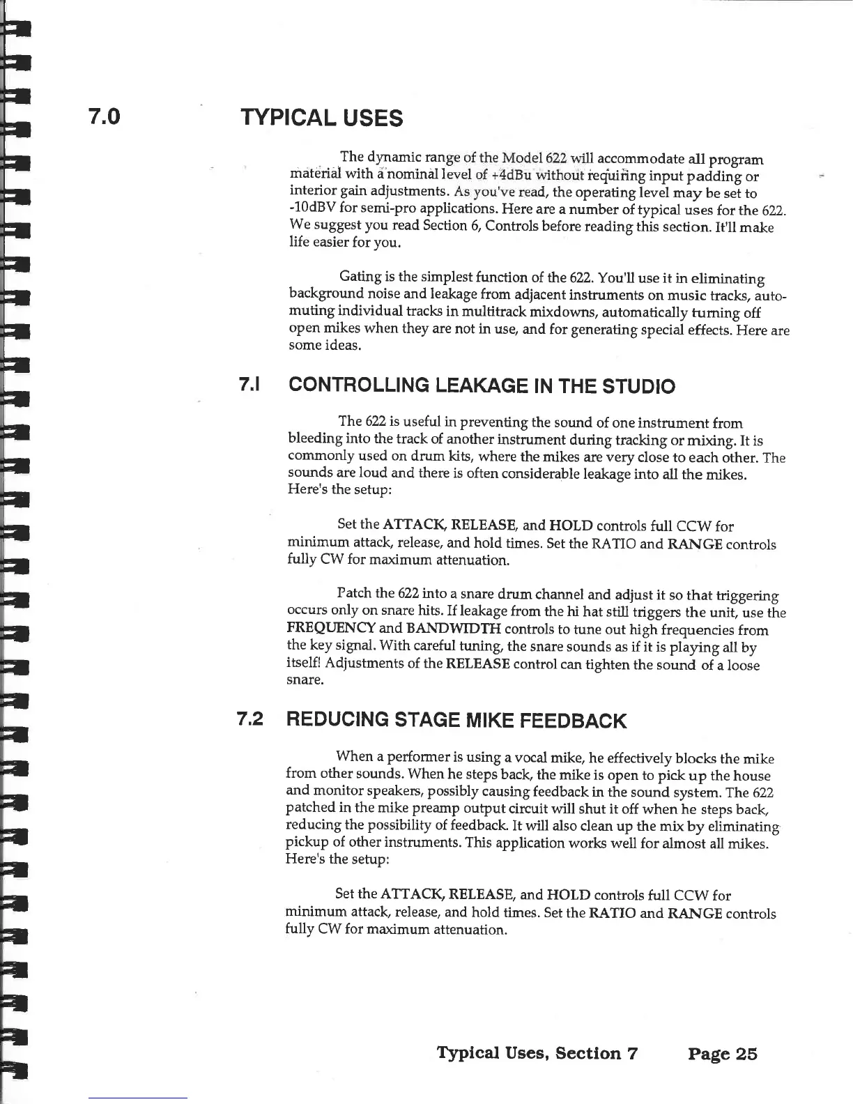 Aphex 622 - 7.0 TYPICAL USES; Studio Leakage Control; Stage Feedback Reduction