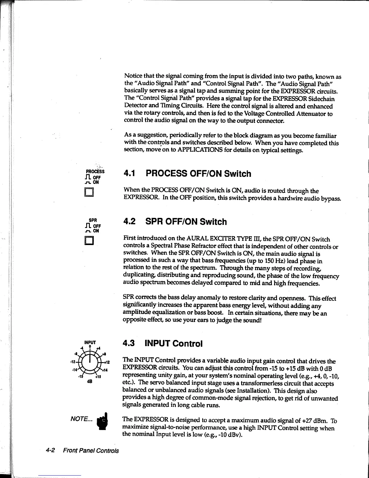 Aphex 651 Expressor - 4.1 PROCESS OFF;ON Switch; 4.3 INPUT Control