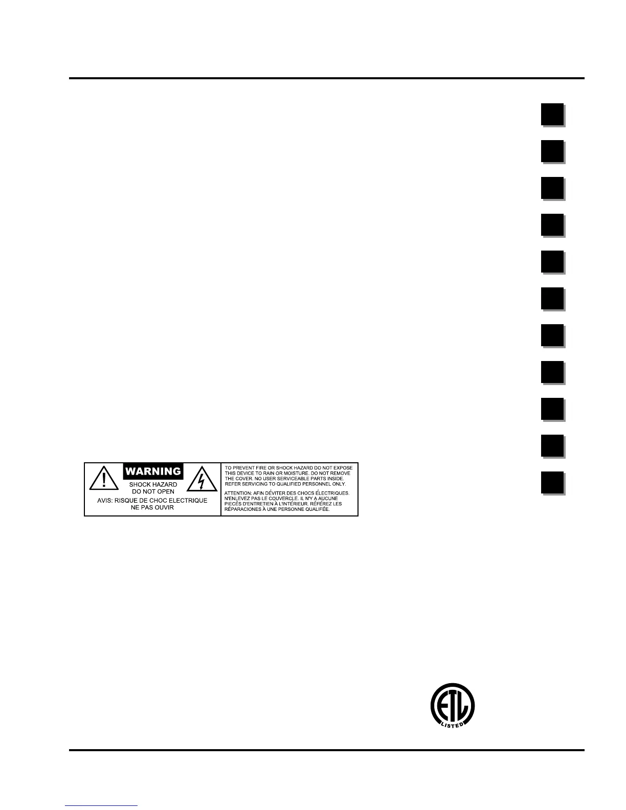 CAUTION: For protection against electric shock, do not remove the cover. No user serviceable parts inside.