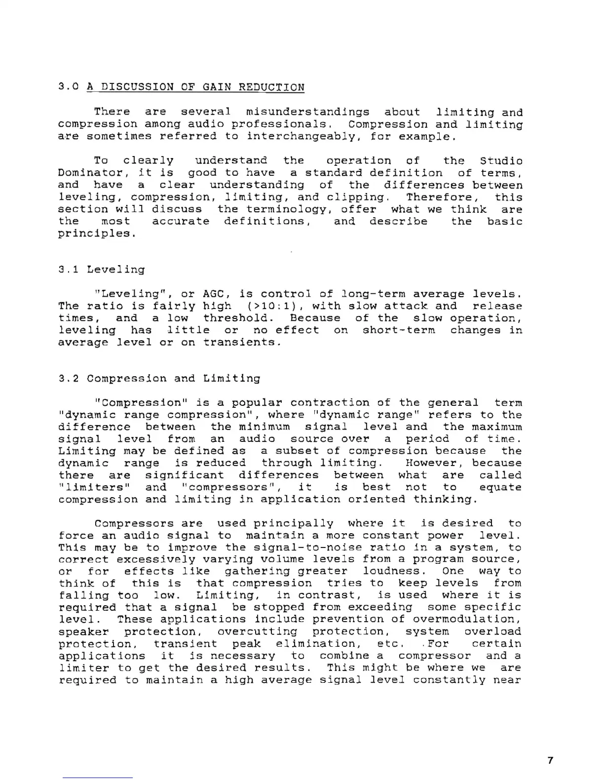 Aphex Studio Dominator 700 - 3 A DISCUSSION of GAIN REDUCTION; Leveling; Compression