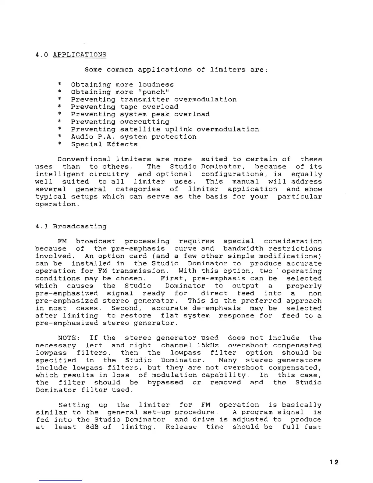 Aphex Studio Dominator 700 - 4 Applications; Broadcasting