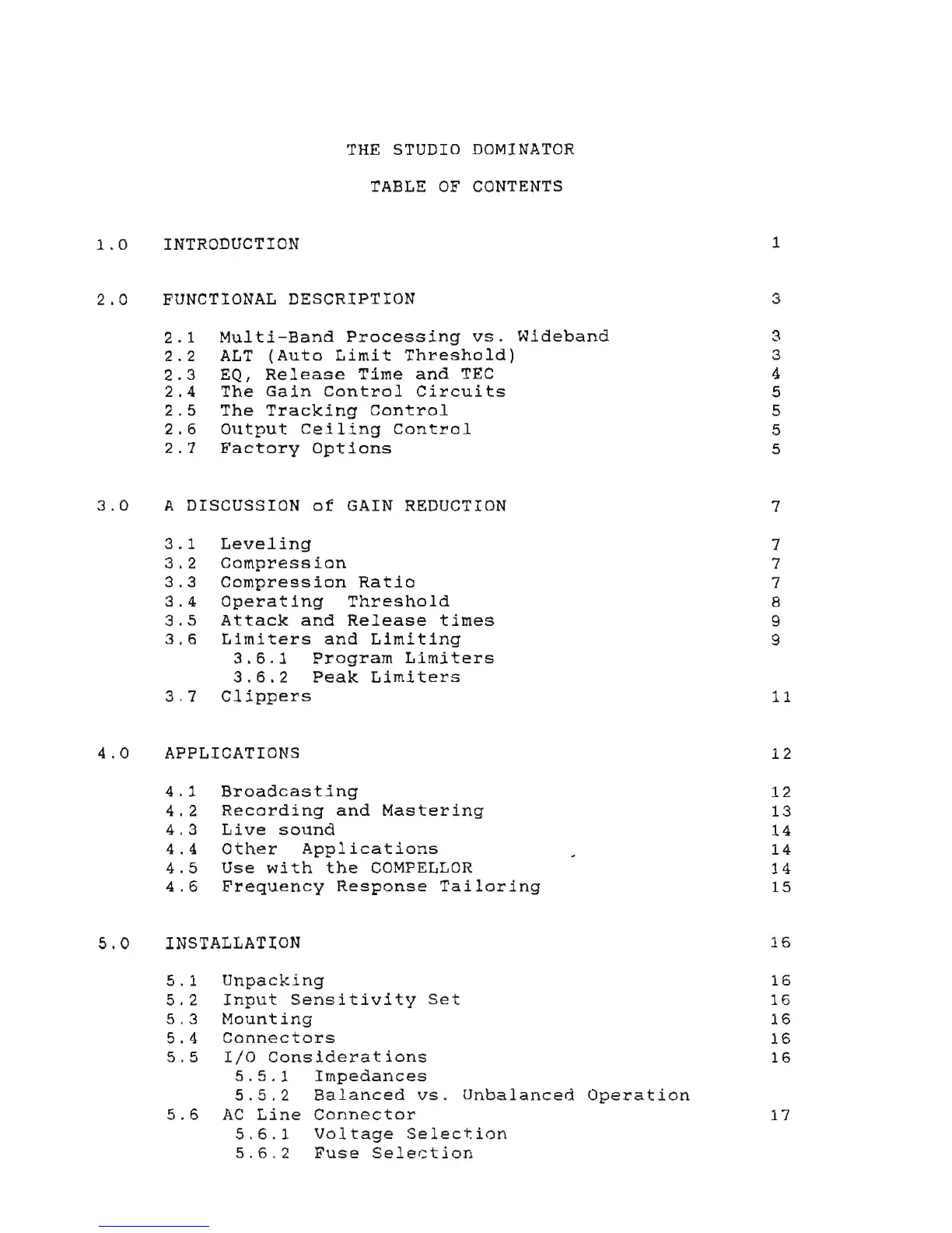 Aphex Studio Dominator 700 - Default Chapter; Table of Contents