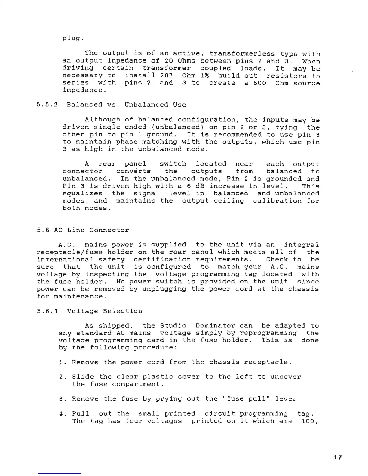 Aphex Studio Dominator 700 - AC Line Connector; Voltage Selection